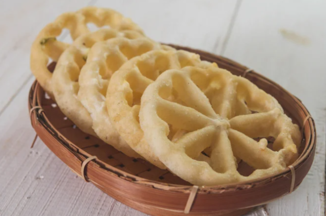 Kenapa namanya kembang goyang? Ternyata ada alasannya lho Teman Seru! Bentuk kue ini memang menyerupai bunga, selain itu proses pembuatannya pun harus digoyang-goyangkan, sehingga disebut kue kembang goyang.