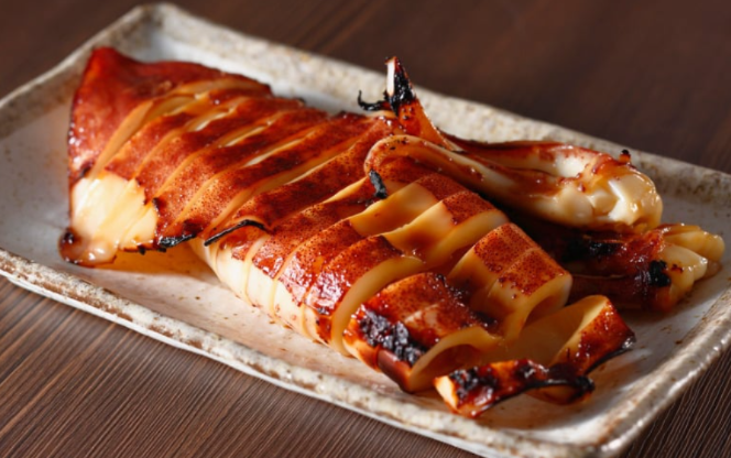 - Kemudian bakar cumi di atas bara api sambil sesekali diolesi dengan bumbu marinasi.