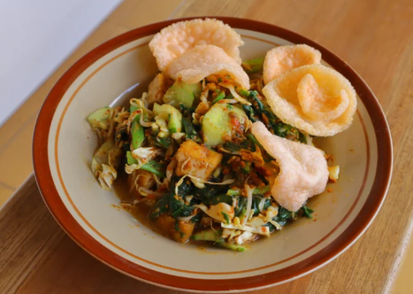 Kalau Teman Seru cari makanan berkuah, Sunda juga punya kok! Mie kocok Bandung ini juga salah satu masakan tradisional Sunda yang populer. Teman Seru tau nggak kenapa namanya mie kocok? Karena proses memasak mienya direbus sambil dikocok-kocok di dalam wadah saringan alumunium bolong-bolong.