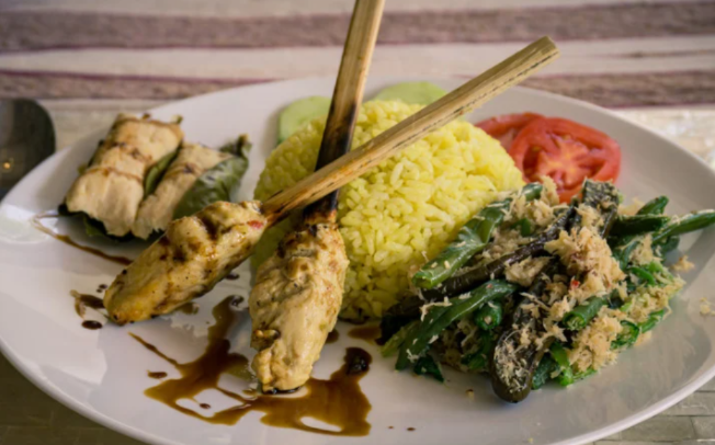 Selain sate lilit, Bali juga punya sate plecing. Makanan khas Bali ini dimasak dengan bumbu plecing yang terbuat dari bahan dasar kemiri, terasi, tomat, bawang putih, dan beberapa bumbu lainnya. Sudah kebayang dong rasanya pasti unik dan lezat.