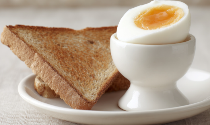 - Sarapan: Telur rebus dan roti gandum panggang