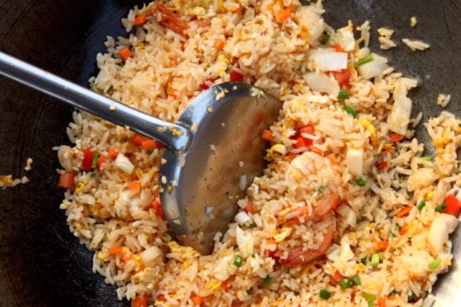 - Pilih Nasi yang Tepat: Gunakan nasi dingin yang agak kering (lebih baik lagi kalau semalaman nasi dimasukkan ke dalam kulkas) untuk mendapatkan tekstur nasi goreng yang renyah di luar dan lembut di dalam.