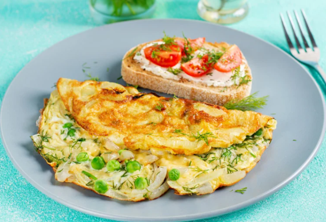 Panggang satu set roti gandum, lalu diisi telur dadar dengan potongan wortel dan daun bawang. Bisa Teman Seru tambahkan juga irisan tomat atau alpukat biar lebih segar. Kombinasi karbohidrat + protein + sayur. Sehat dan mantab!