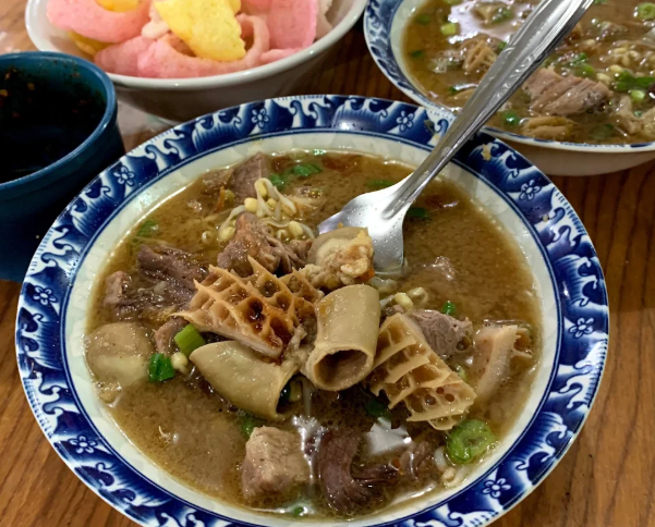 Wisata kuliner Purwokerto ini termasuk legendaris, dan menu uniknya jarang ditemukan di tempat lainnya, yaitu sahoun ayam dengan kuah segar, yang terbuat dari olahan tepung tapioka dan tepung beras lalu dipotong seperti kwetiau. Sajian lezat ini terdiri dari mie, kuah berkaldu ayam, kecap asin, daun bawang, dan suwiran daging ayam dalam satu mangkuk.
