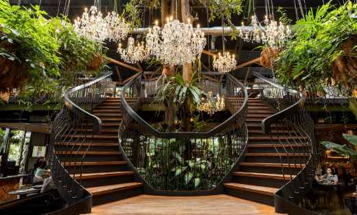 Tempat makan dengan interior kayu dan tanaman hijau ini bukan cuma adem di mata, tapi juga di hati. Menunya khas Indonesia seperti nasi bakar dan gulai, cocok buat acara makan bareng yang hangat dan sehat.